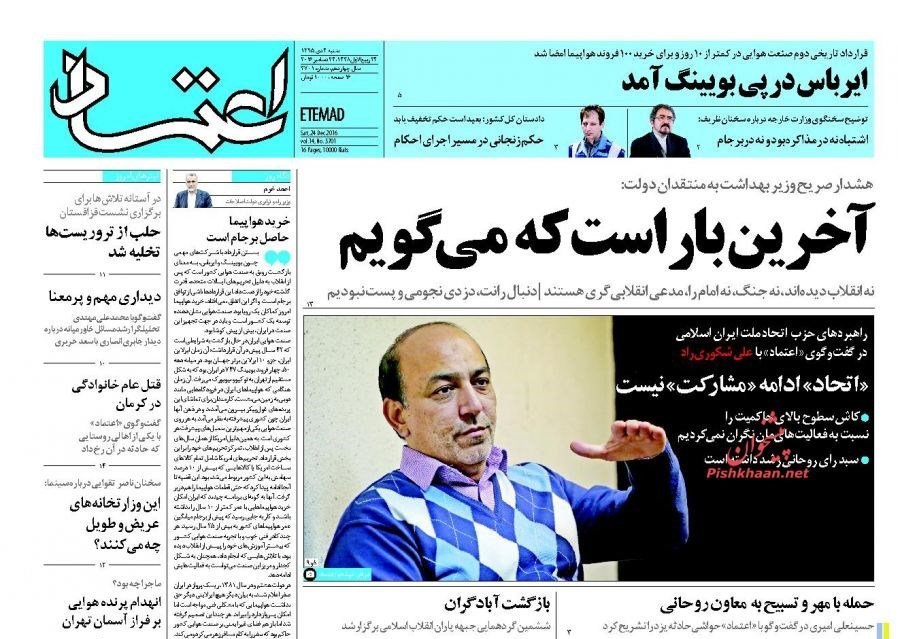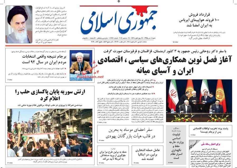 تصاویر صفحه اول روزنامه‌های شنبه 4 دی