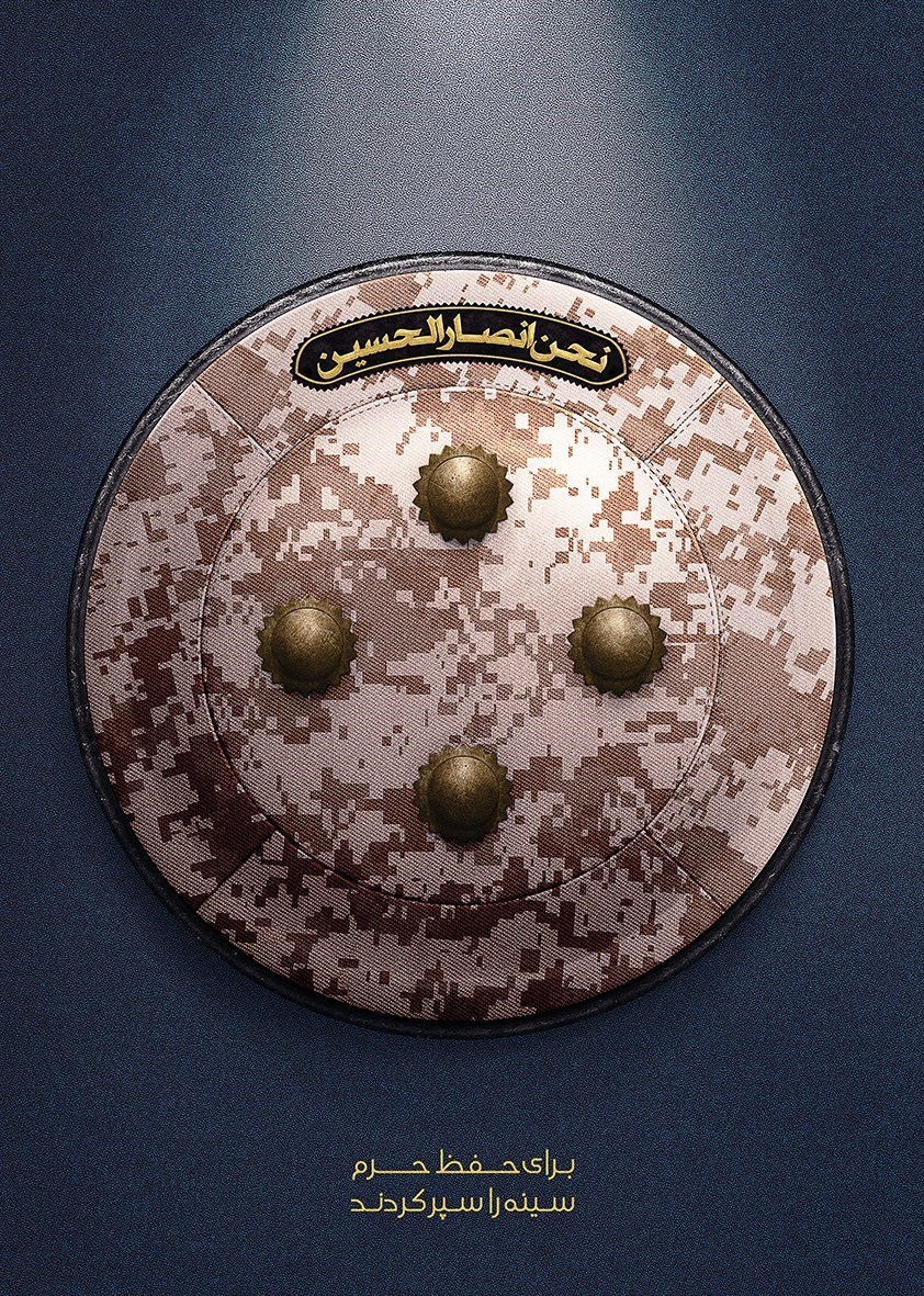 این پوستر مدافعان حرم را به سپری تشبیه کرده است که تا پای جان پای امام شهیدان و راهش ایستادگی کردند و نگذاشتند تروریستها حتی در خواب حرم حضرت زینب (س) را ببینند.
