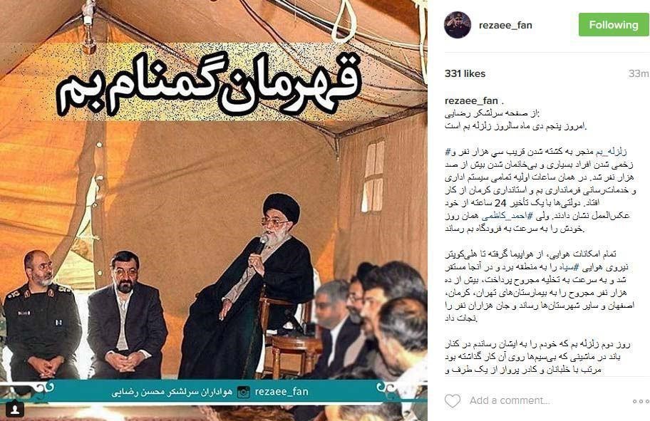به گزارش گروه رسانههای خبرگزاری تسنیم،محسن رضایی در اینستاگرامش نوشت : زلزله_بم منجر به کشته شدن قریب سی هزار نفر و زخمی شدن افراد بسیاری و بیخانمان شدن بیش از صد هزار نفر شد. در همان ساعات اولیه تمامی سیستم اداری و خدماترسانی فرمانداری بم و استانداری کرمان از کار افتاد. دولتیها با یک تأخیر 24 ساعته از خود عکسالعمل نشان دادند. ولی #احمد_کاظمی همان روز خودش را به سرعت به فرودگاه بم رساند.