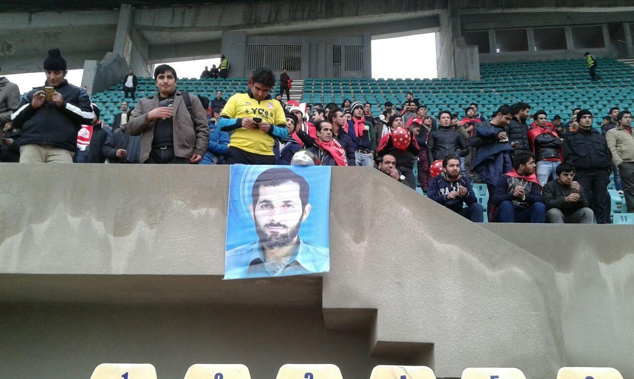 * هواداران تیم فوتبال تراکتورسازی عکسهایی از شهید باکری را همراه خود داشتند.