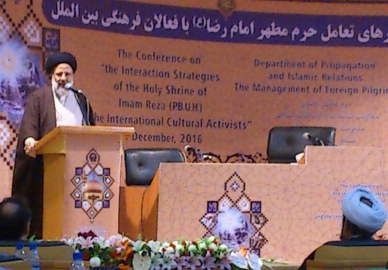 به گزارش خبرنگار فرهنگی باشگاه خبرنگاران تسنیم «پویا» آیت الله سیدابراهیم رئیسی، تولیت آستان قدس رضوی در همایش «بررسی راهکارهای تعامل مؤسسات و فعالان اسلامی بین‌الملل با آستان قدس رضوی» ضمن بیان اولین راهکار تعامل با آستان قدس رضوی، گفت: اولین راهکار تعامل با آستان قدس رضوی، مسأله معنویت است. این مسأله می‌تواند محوریتی را در راستای اتحاد ملتها ذیل مضجع شریف امام رضا(ع) ایجاد کند. کسانی که داعیه‎دار اسلام منهای دین هستند، نتیجه آن را در جنگهای جهانی و نیز اشغال فلسطین پیگیری کنند. نامه مقام معظم رهبری به جوانان اروپا دقیقاً در همین راستا بود؛ یعنی با معرفی اسلام ناب شیعی بتوان معنویت اصیل اسلام را به ملتها معرفی کرد. همان معنویتی که غرب در صدد است آن را به حاشیه براند.