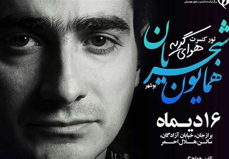 به گزارش خبرگزاری تسنیم، «حسین لاله رخ» تهیهکننده کنسرت همایون شجریان در بوشهر و مدیر سرایش مهر لیان، با اعلام این خبر، گفت: همایون شجریان به همراه گروه موسیقی «سیاوش» در ادامهٔ برگزاری تور کنسرت «هوای گریه» و طبق برنامه ریزیهای قبلی در تاریخ 16 دی ماه، در استان بوشهر و شهر «برازجان» به اجرای کنسرت میپردازد، اجرا بالاخره پس از دو سال پیگیری و مکاتبات با آقای محمد حسین توتونچیان مدیر برنامهٔ محترم همایون شجریان و همکاری ادارهٔ کل فرهنگ و ارشاد استان بوشهر، در بهترین فصل آب و هوایی این خطه برگزار خواهد شد.