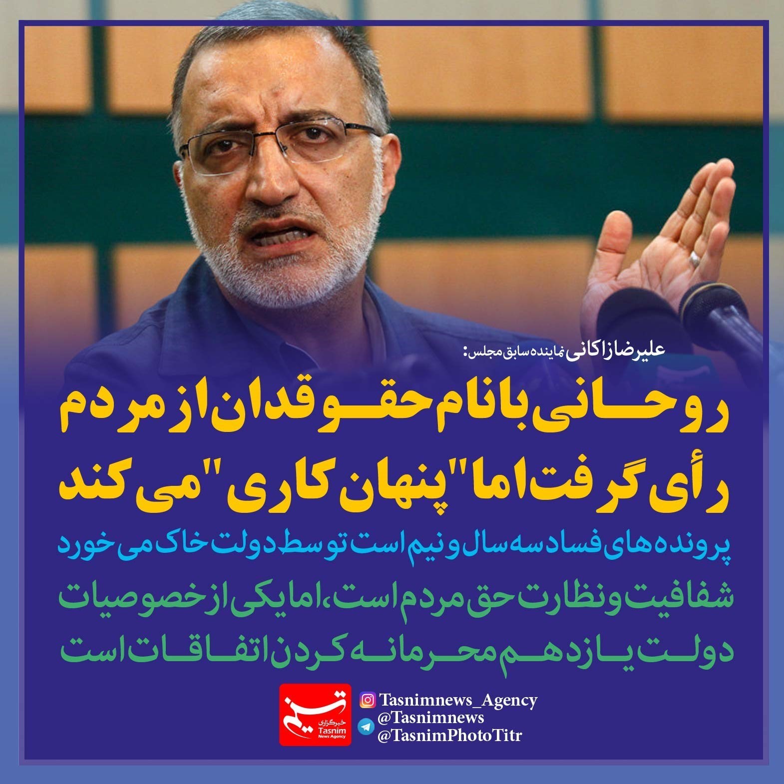 فوتوتیتر/زاکانی: روحانی با نام حقوقدان از مردم رأی گرفت اما "پنهان‌کاری" می‌کند