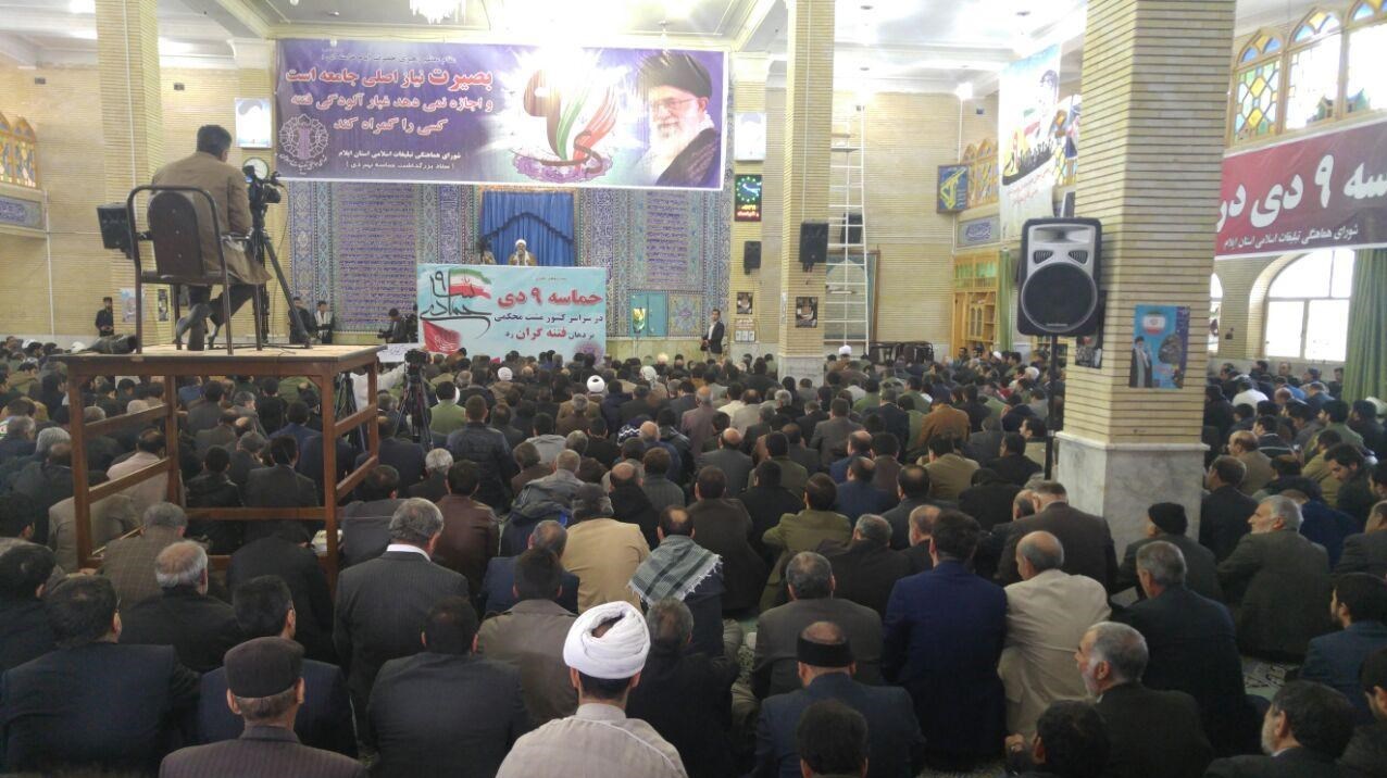 مردم ولایت مدار شهرستان مهران با حضور گسترده در مسجد جامع این شهر ضمن سردادن فریاد مرگ بر فتنهگر سالروز حماسه 9 دی را گرامی داشتند.