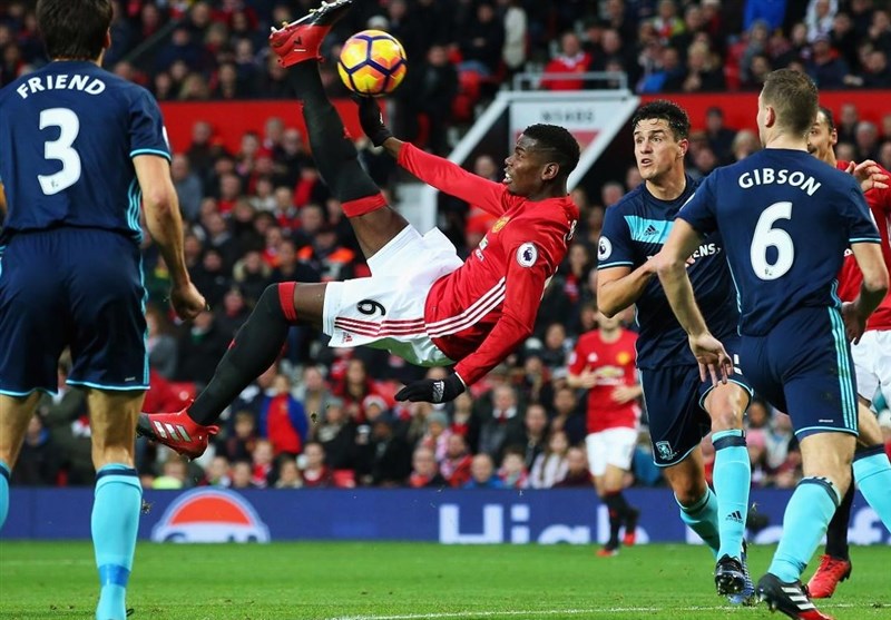 در دیگر بازی مهم امشب منچستریونایتد در ورزشگاه اولدترافورد میزبان میدلزبورو بود و این تیم را با نتیجه 2 بر یک شکست داد. گرانت لیدبیتر در دقیقه 67 گل نخست این بازی را برای به ثمر رساند. این نتیجه تا دقیقه 85 پابرجا بود تا اینکه آنتونی مارسیال کار را به تساوی کشاند. کمتر از دو دقیقه بعد شیاطین سرخ از بازی باخت پیروزی ساختند زمانی که پل پوگبا دومین گل میزبان را با یک ضربه سر به ثمر رساند تا ژوزه مورینیو در نبرد با دستیار قدیمی خود در رئال مادرید، آیتور کارانکا پیروز شود.