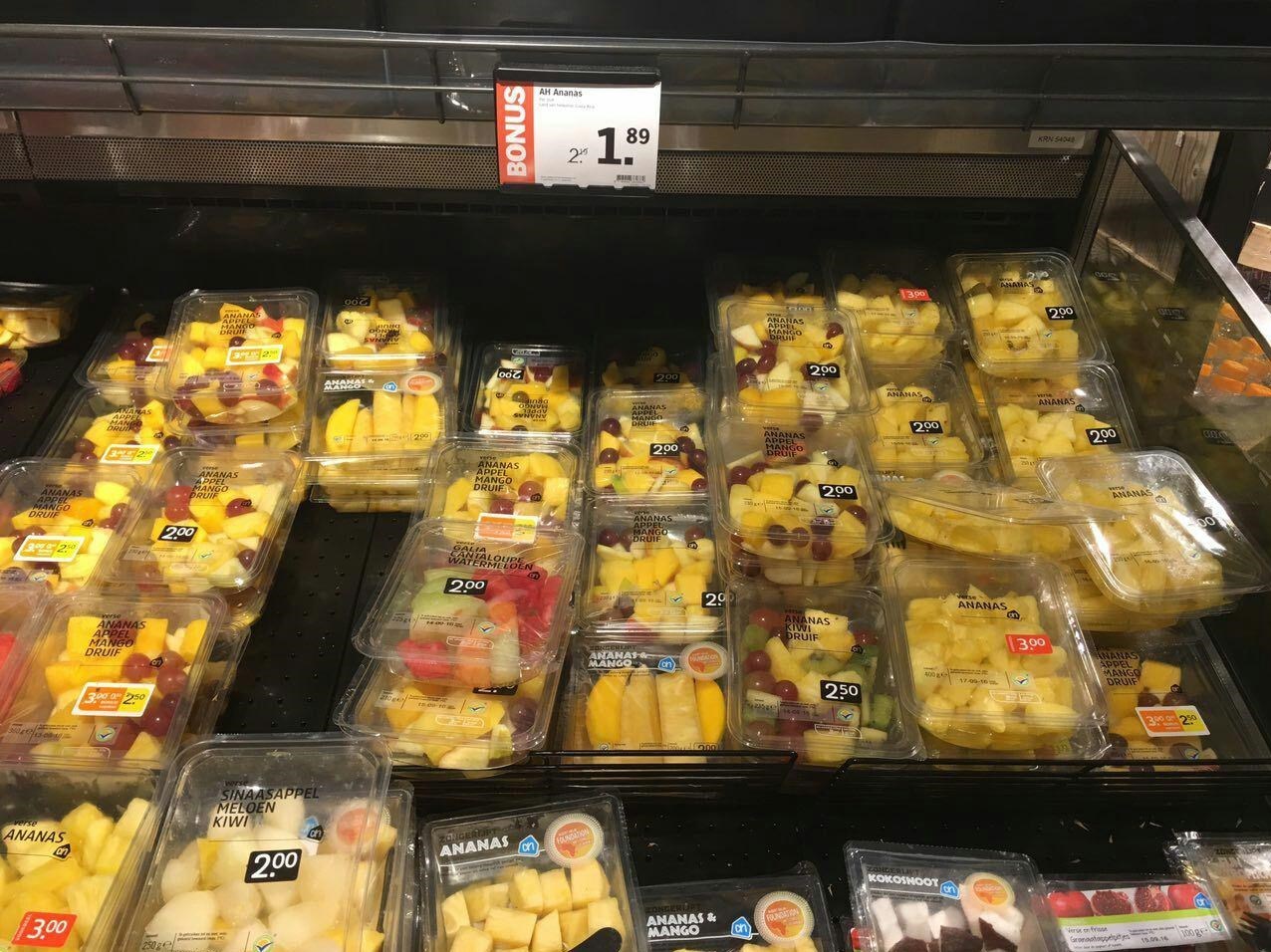 تصویری از نوع بسته بندی و فروش تکه های میوه در شهر دلفت هلند که نشان دهنده مصرف درست اهالی این شهر اروپایی می باشد.