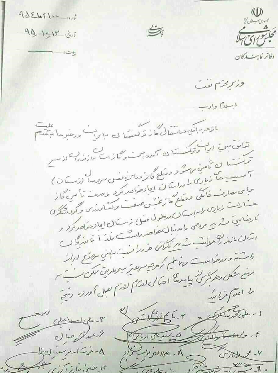 به گزارش خبرنگار پارلمانی باشگاه خبرنگاران تسنیم «پویا»، جمعی از نمایندگان استان مازندران در مجلس شورای اسلامی در نامه‌ای به بیژن زنگنه وزیر نفت، با ابراز نگرانی نسبت به قطع احتمالی گاز شهرهای شمالی کشور،خواستار توجه جدی و فوری وزیر نفت و نیز دولت درباره پیگیری وضعیت کمبود و قطعی احتمالی گاز در شهرهای این استان شدند.
