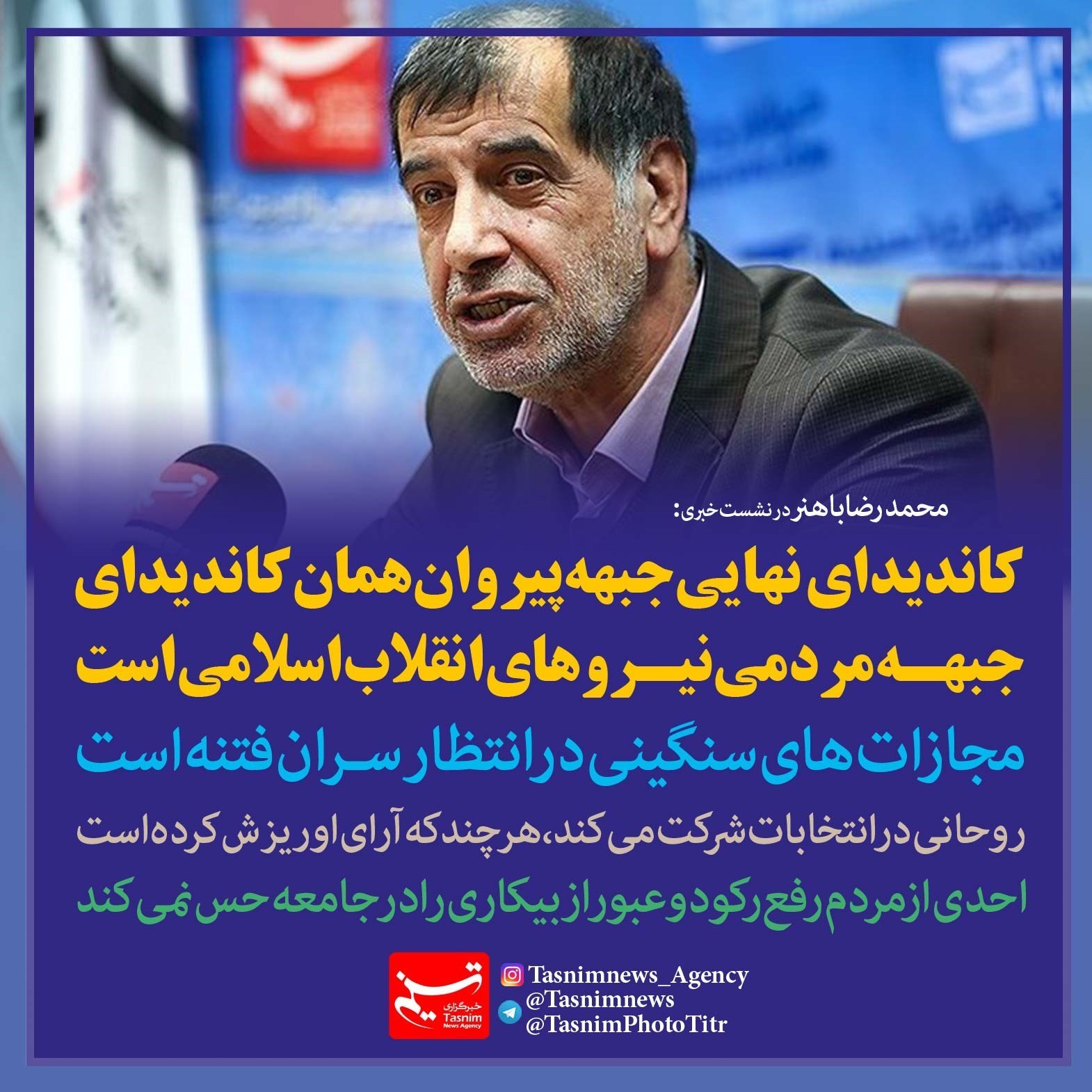 فتوتیتر/باهنر:کاندیدای نهایی جبهه پیروان همان کاندیدای جبهه مردمی نیروهای انقلاب اسلامی است