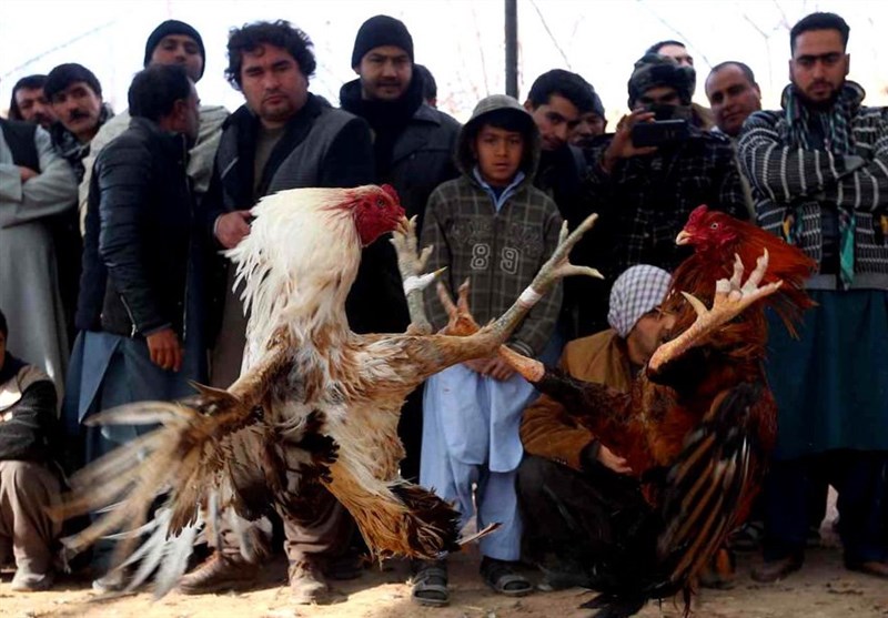 تصویری از جنگ خروس‌ها در طول مسابقات محلی هرات افغانستان منتشر می شود.