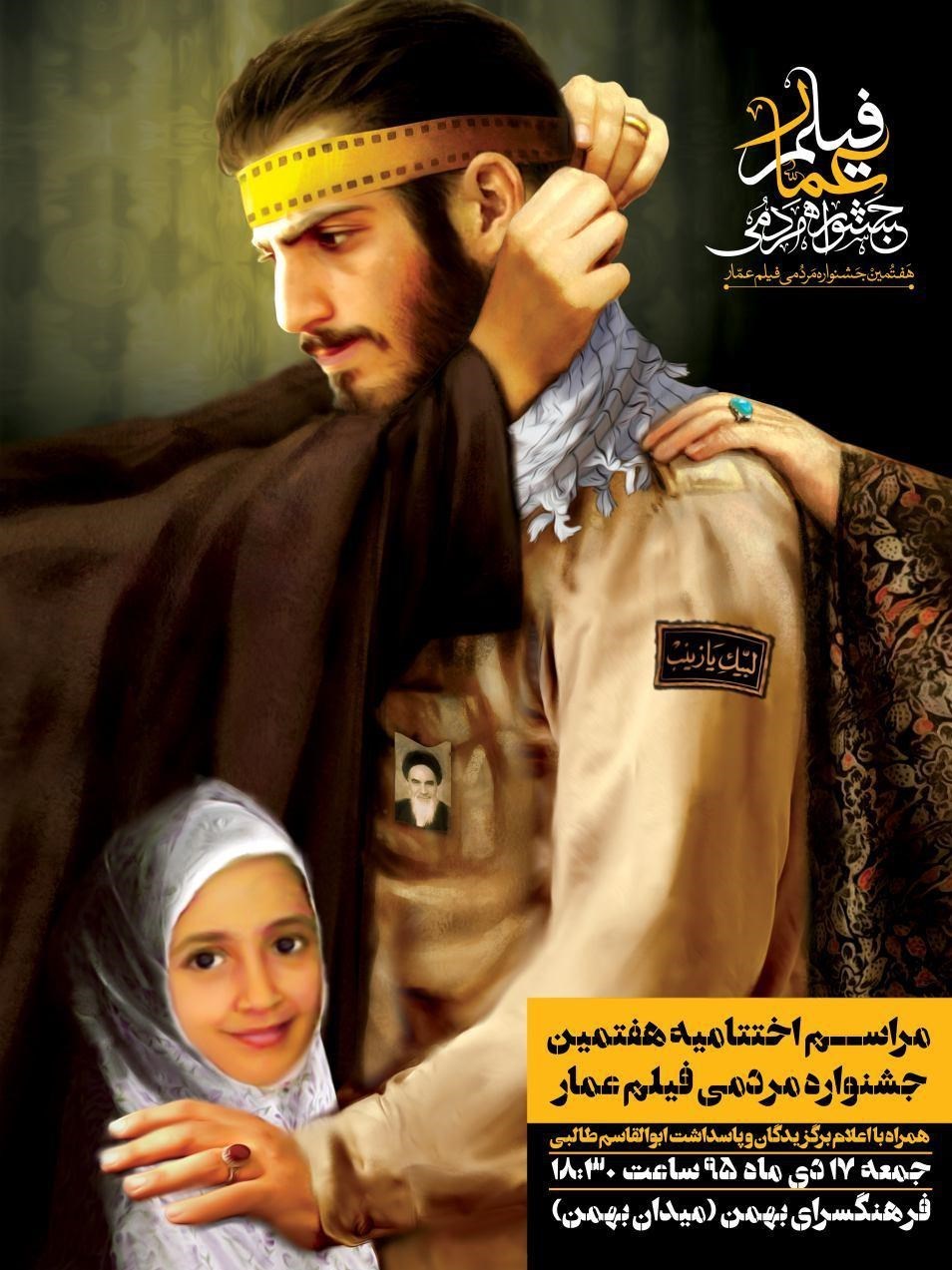 اختتامیه جشنواره مردمی فیلم عمار جمعه 17 دی ماه 95 ساعت 18 و 30 دقیقه در محل فرهنگسرای بهمن واقع در میدان بهمن برگزار خواهد شد و حضور برای عموم مردم در این مراسم آزاد است.