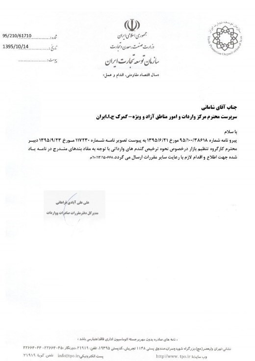 تصویر ابلاغیه سازمان توسعه تجارت و نامه معاون اجرایی رئیس جمهور را در ادامه ببینید: