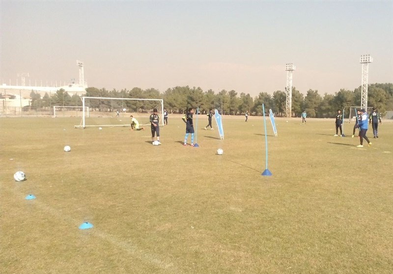 * بازیکنان ابتدا زیر نظر علی چنیی حرکات کششی و نرمشی انجام دادند و سپس به مدت 15 دقیقه دور زمین دویدند و در ادامه به تمرینات هوازی روی آوردند. سپس بازیکنان به صورت دو به دو تقسیم شده، پا به توپ شدند و پاس های بلند به همدیگر دادند.