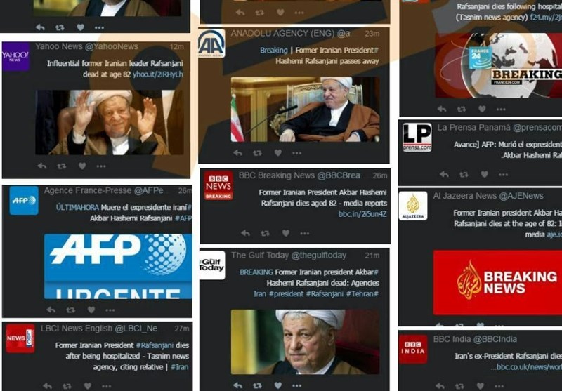 رسانههای مختلف خبری در سراسر جهان بلافاصله پس از انتشار خبر رحلت رئیس مجمع تشخیص مصلحت نظام، این خبر را در صدر اخبار خود قرار دادند. شبکههای تلویزیونی جهانی نیز با قطع برنامههای خود، خبر رحلت ایشان را پوشش داده و کماکان این خبر در صدر اخبار آنها قرار دارد.