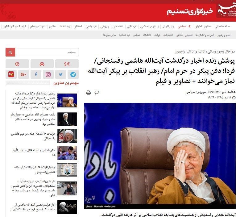 ** پوشش زنده اخبار درگذشت آیتالله هاشمی رفسنجانی را در این لینک بخوانید (کلیک کنید)