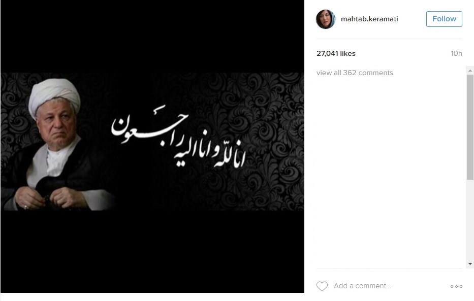 مهتاب کرامتی نیز بدون هیچ شرحی پیام تسلیت خود را با این عکس اعلام کرد.