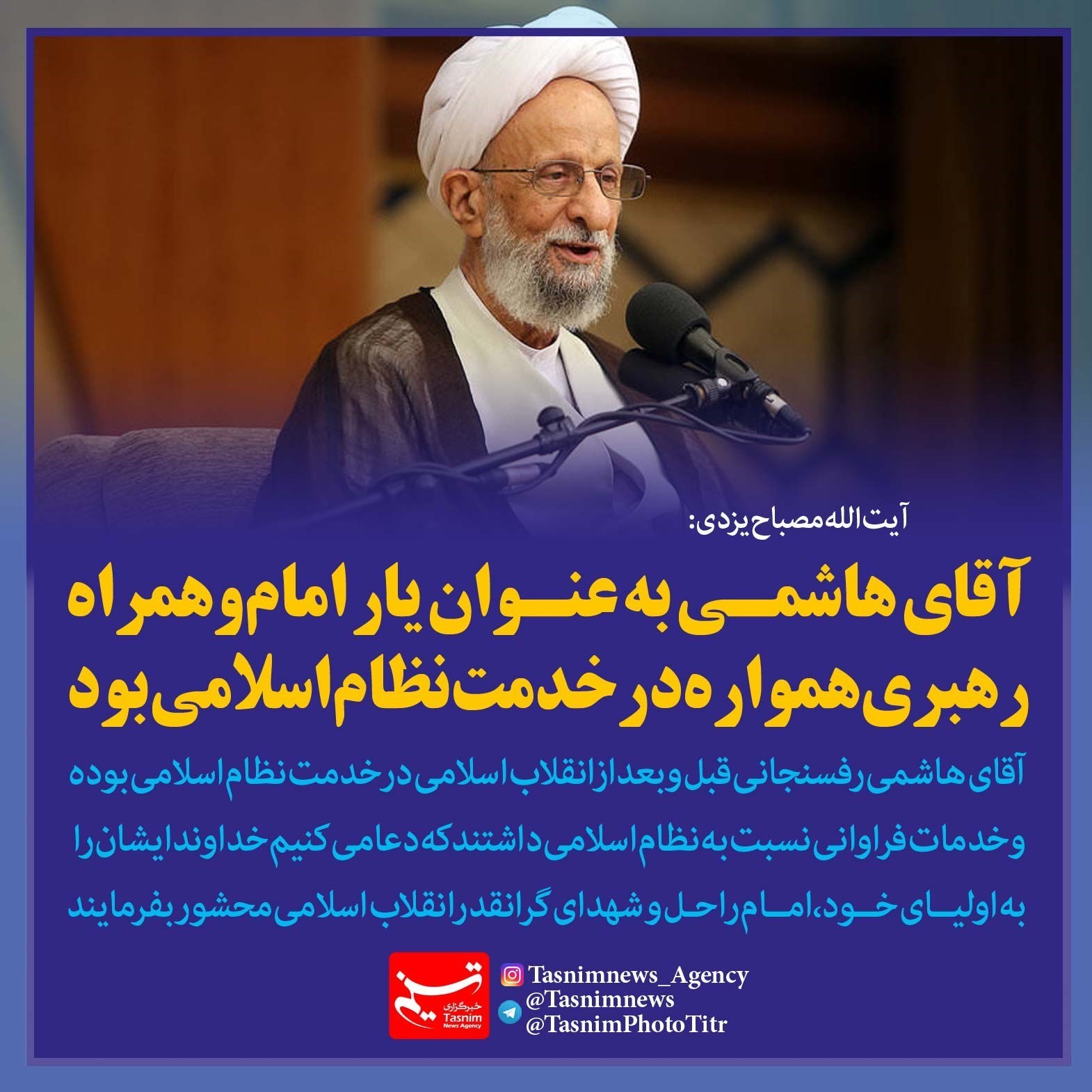 فتوتیتر/آیت الله مصباح یزدی:آقای هاشمی به‌عنوان یار امام و همراه رهبری در خدمت نظام اسلامی بود