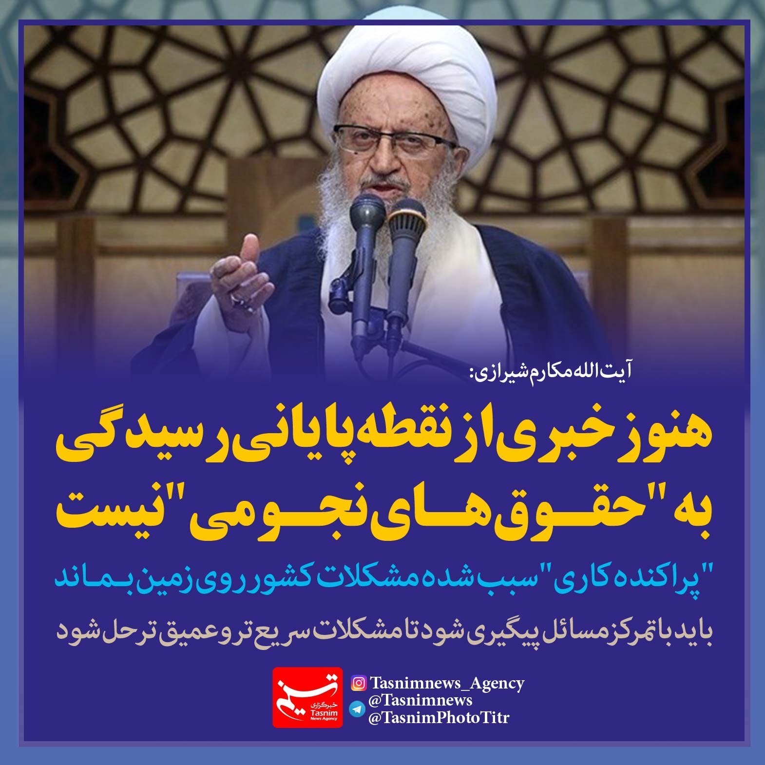 فتوتیتر/آیت الله مکارم شیرازی:هنوز خبری از نقطه پایانی رسیدگی به"حقوق‌های نجومی" نیست