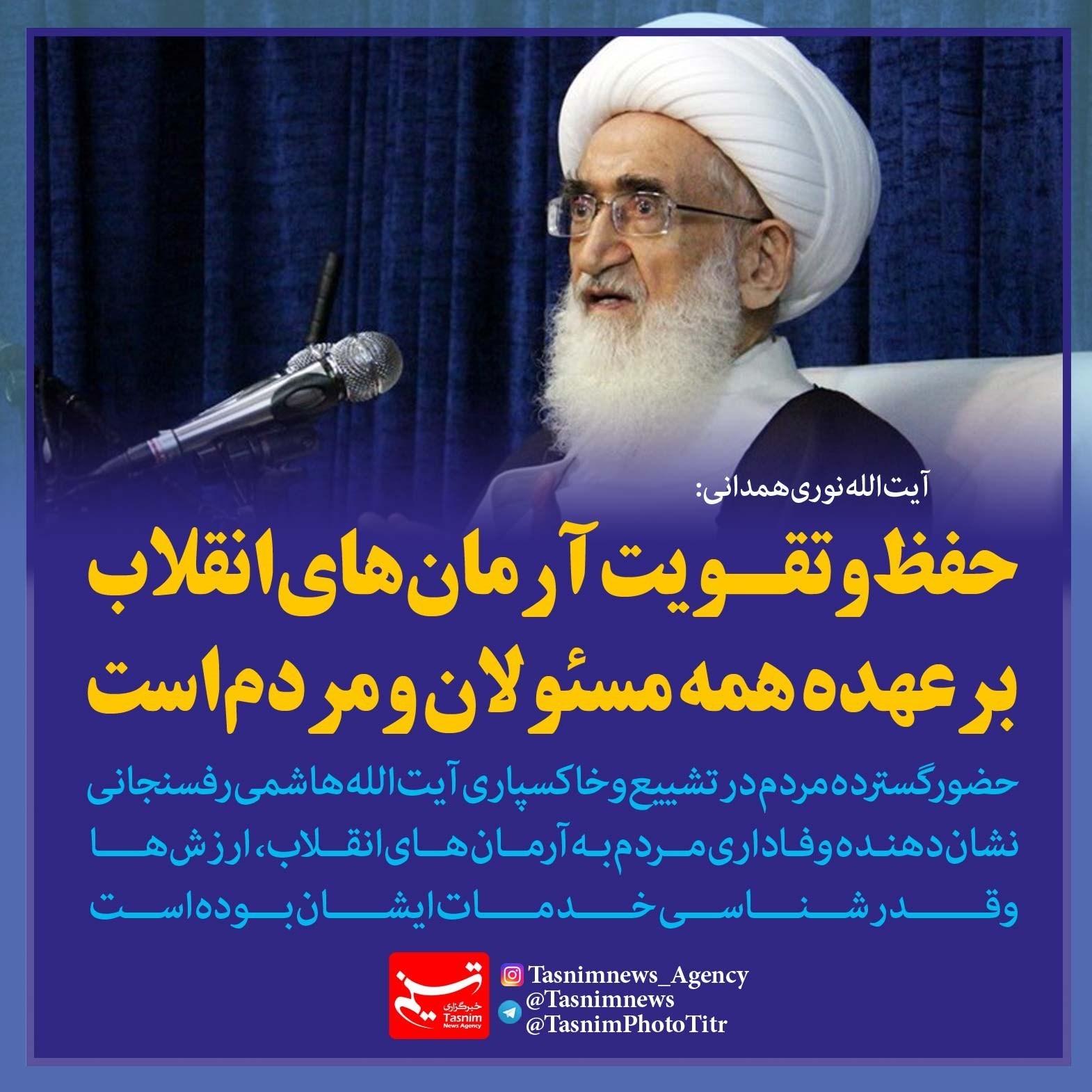 فتوتیتر/آیت الله نوری همدانی: حفظ و تقویت آرمان‌های انقلاب بر عهده همه مسئولان و مردم است