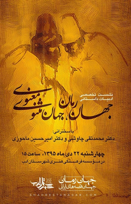 به گزارش خبرگزاری تسنیم، پانزدهمین نشست تخصصی ادبیات داستانی شهرستان ادب با عنوان «جهان رمان، جهان مثنوی معنوی» برگزار میشود. در این نشست محمدتقی چاووشی و امیرحسین ماحوزی از پژوهشگران شناخته شده حوزه ادبیات داستانی سخنرانی خواهند کرد.
