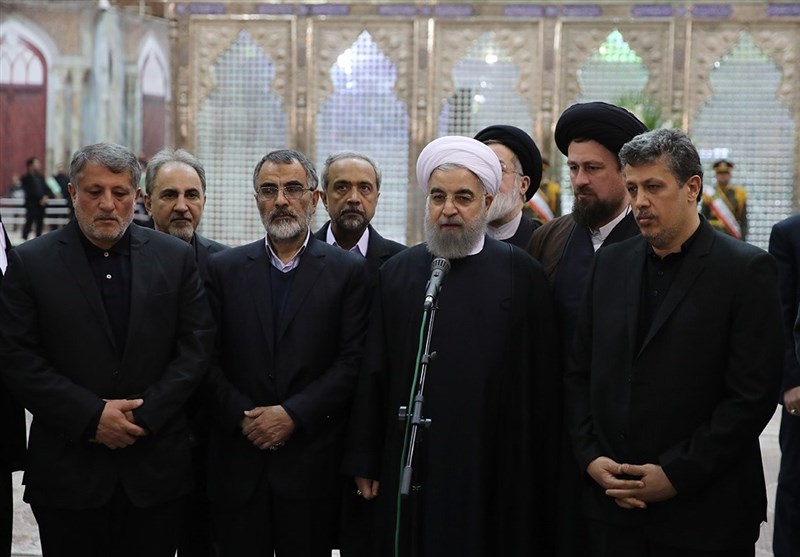 به گزارش حوزه دولت خبرگزاری تسنیم به نقل از پایگاه اطلاعرسانی ریاستجمهوری، حجتالاسلام حسن روحانی رئیسجمهور پس از زیارت مرقد مطهر بنیانگذار کبیر انقلاب اسلامی و حضرت آیتالله هاشمیرفسنجانی، با حضور در جمع خبرنگاران، جهاد و فداکاری در راه نظام اسلامی و بویژه عقلانیت، اعتدال و میانهروی در مسائل و پیچ و خمهای مختلف را از ویژگیهای بارز آیتالله هاشمیرفسنجانی برشمرد و تاکید کرد که ملت بزرگ ایران همان راه و مسیر این بزرگوار را انتخاب میکند.