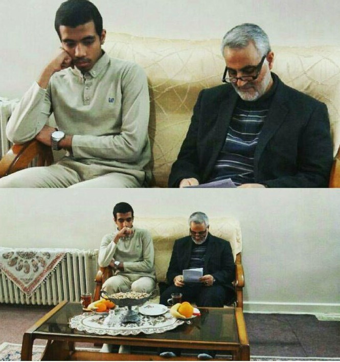سردار قاسم سلیمانی با خانواده سردار شهید حسین رضایی از شهدای مدافع حرم استان اصفهان و معروف به "ابوحامد" دیدار کرد.