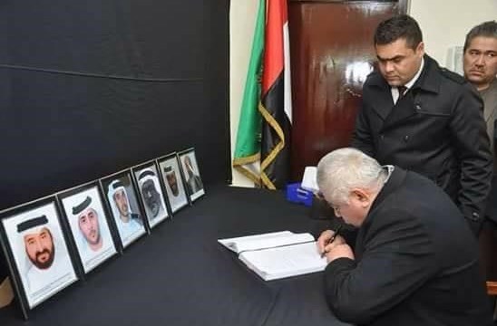 ژنرال دوستم، پیام تسلیت خود را در سفارت امارات تحریر کرد.