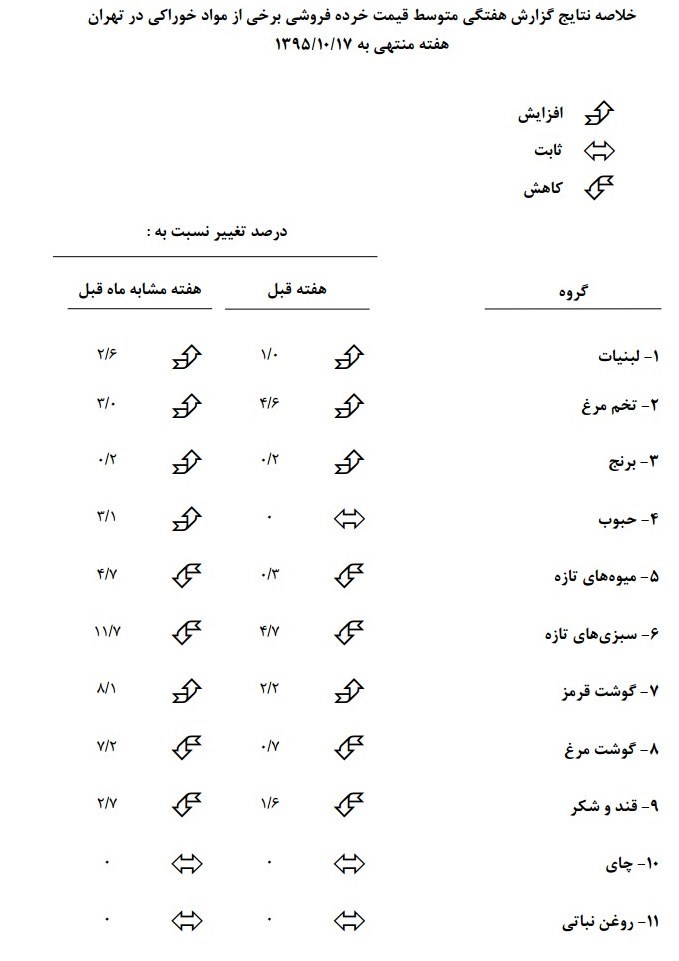 همچنین قیمت اقلامی مانن روغن، حبوبات و چای هیچ افزایش قیمتی نداشته است.