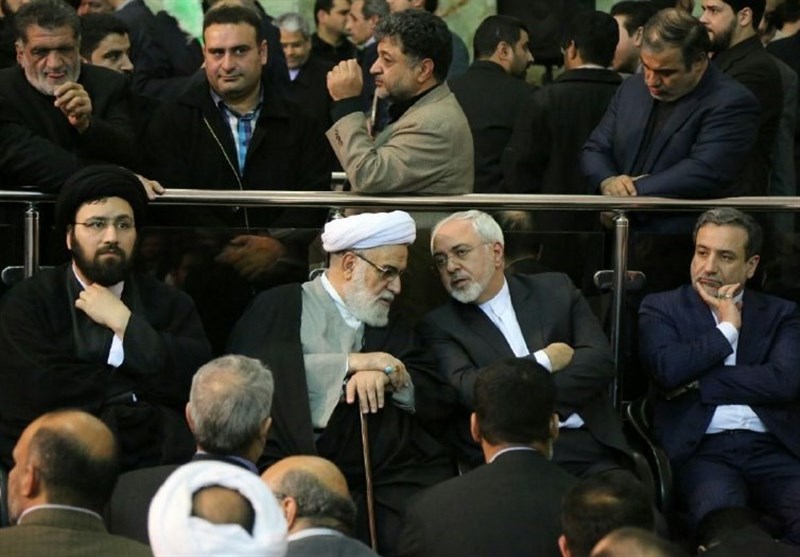 شرکت ظریف در مراسم  هفتم آیت‌الله هاشمی رفسنجانی در حرم مطهر امام