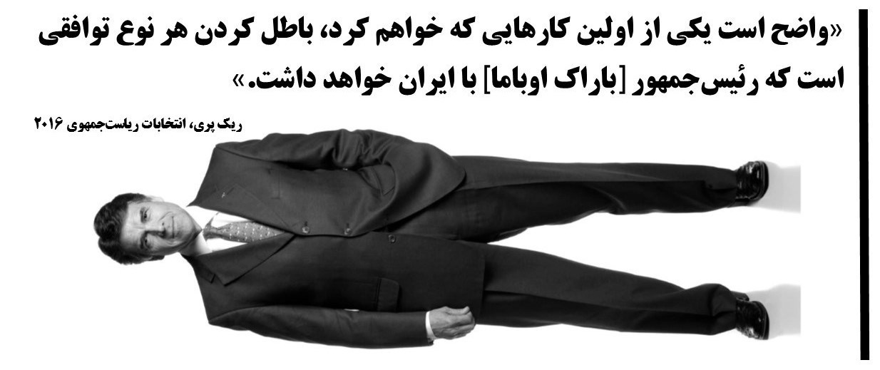 ریک پری، پس از توافق هستهای ایران با صدور بیانیهای اعلام کرد: «تصمیم رئیسجمهور اوباما برای امضای توافق هستهای با ایران یکی از مخربترین تصمیمات سیاست خارجی در دوران زندگی من بود. طی دهههای آتی، جهان مجبور خواهد بود با پیامدهای این توافق که در حقیقت ساخت سلاح هستهای را برای ایران راحتتر کرده است، دست و پنجه نرم کند.»