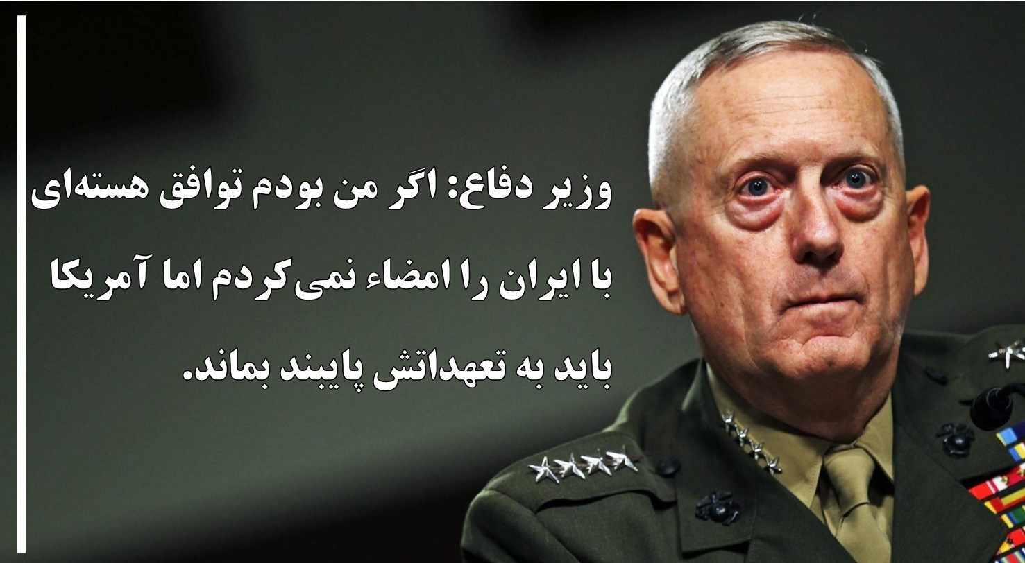 البته نامزد وزارت دفاع آمریکا در بخش پرسش و پاسخ گفته بود که «اگر من بودم این توافق را امضا نمیکردم.»