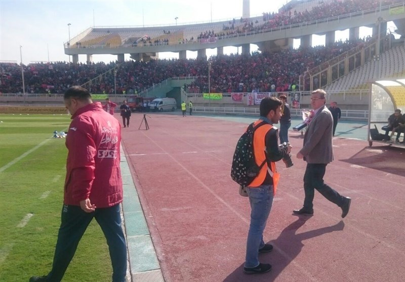 * برانکو ایوانکوویچ همراه با تیمش به کنار زمین آمد و از دستیارش خواست ترکیب تیم فولاد را به طور دقیق شناسایی کند.