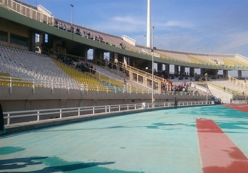 * بنری از هادی نوروزی در ورزشگاه دیده میشود.