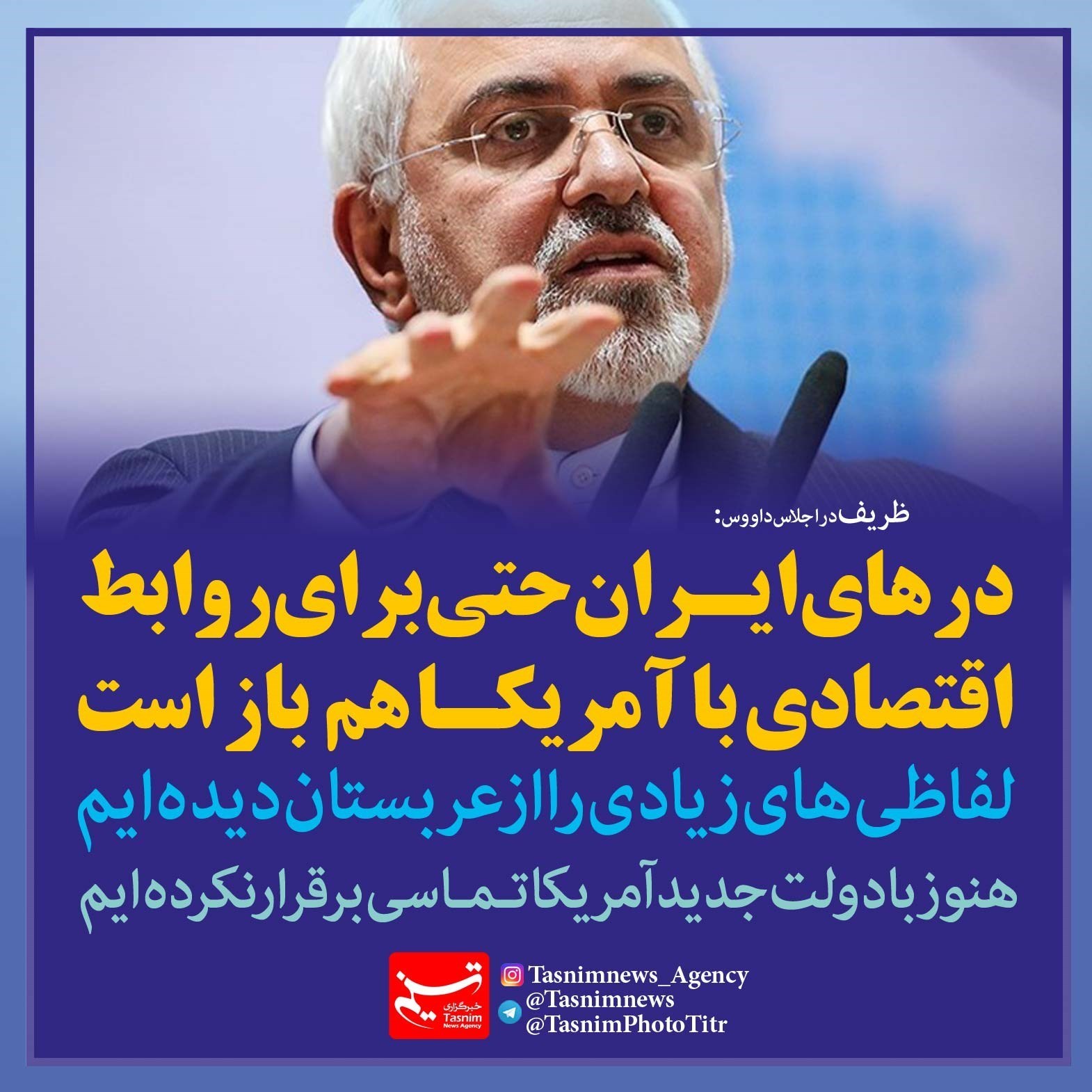 وزیر خارجه ایران در اجلاس داووس گفت که به رغم اختلافات سیاسی، درهای ایران حتی برای روابط اقتصادی با آمریکا هم باز است.