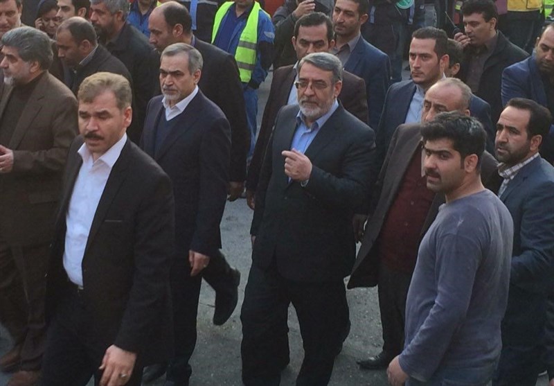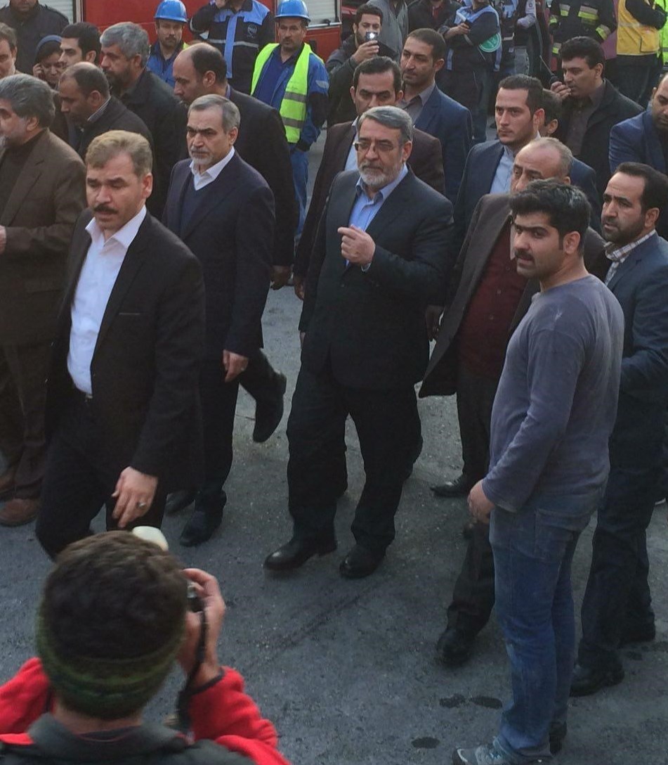 وزیر کشور و برادر رئیس‌جمهور در محل حادثه پلاسکو حضور یافتند.