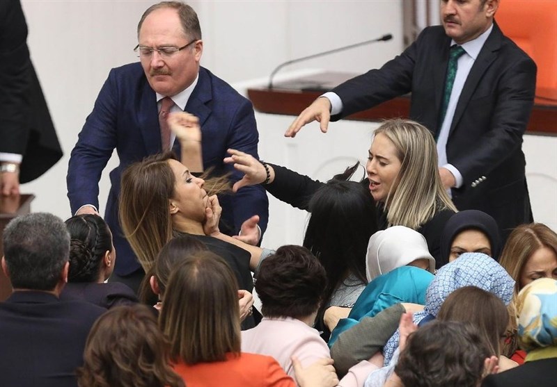به گزارش گروه بین الملل خبرگزاری تسنیم، یک نماینده مخالف رجب طیب اردوغان رئیس جمهور ترکیه در اعتراض به اردوغان، خودش را به تریبون پارلمان بست که به درگیری بین نمایندگان منجر شد و دو نماینده در زدوخوردها زخمی شدند.