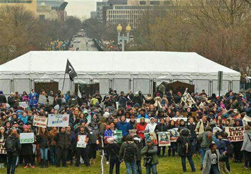 به گزارش گروه بین الملل خبرگزاری تسنیم، قرار است تا دقایقی دیگر دونالد ترامپ جمهوریخواه مراسم تحلیف را به جای آورد و رسما کلید کاخ سفید را از باراک اوباما تحویل بگیرد اما در این میان مخالفان ترامپ در اطراف محل برگزاری مراسم سوگند تجمع کرده اند.
