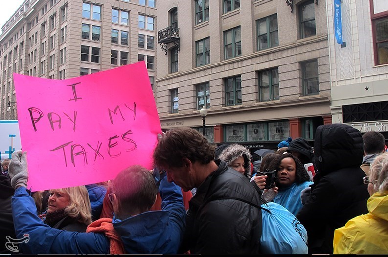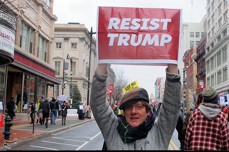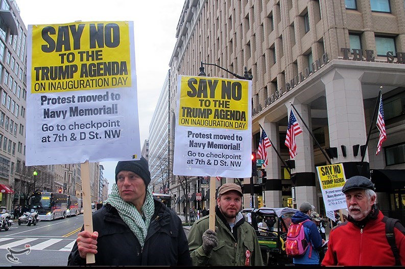 «جان مایکل» از فعالان گروه «وکلای ملی آمریکا» به خبرنگار تسنیم در خیابان شماره هفت و پنسیلوانیا یکی از محلهای تجمع معترضان به ریاستجمهوری ترامپ گفت: «ما آمدهایم به جهان بگوییم که ما این رئیس جمهور را انتخاب نکردیم و او نماینده ما نیست».