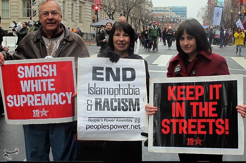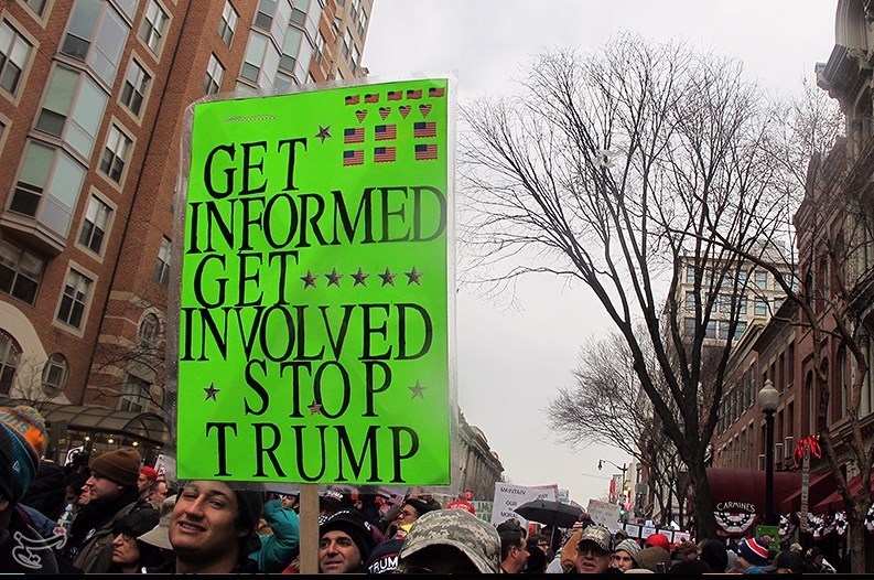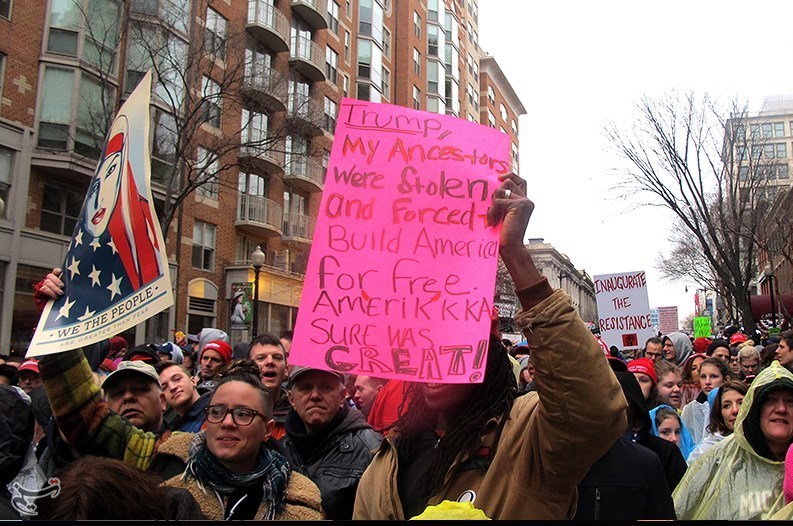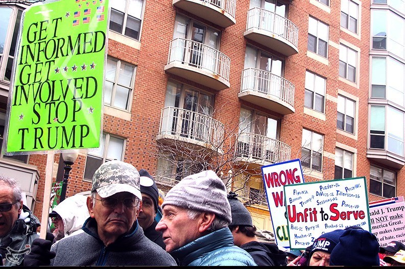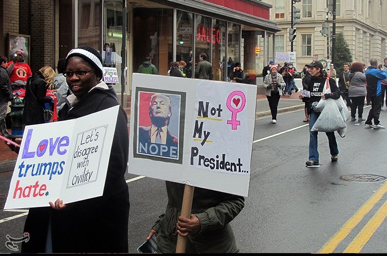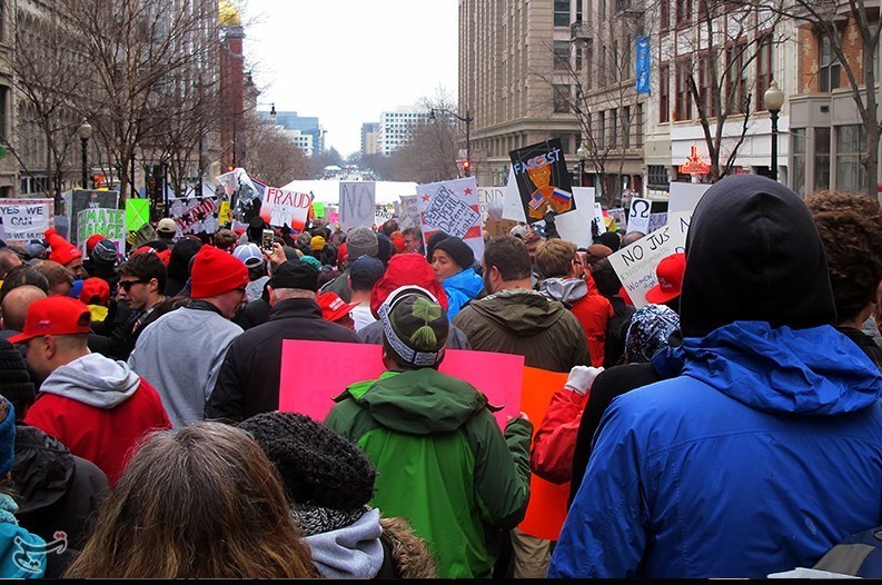 مخالفان ترامپ در تظاهرات روز جمعه اظهارات وی علیه اقلیتها در دوران مبارزات انتخابات ریاست جمهوری را محکوم کردند و این تاجر میلیاردر را فردی نژادپرست و فاشیست خواندند.