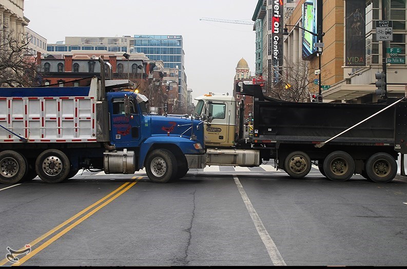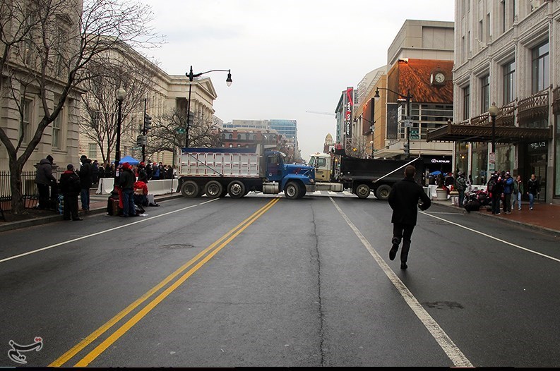 نیروهای امنیتی، خیابان پنسیلوانیا را که از کنار کاخ سفید تا کنگره آمریکا در موقعیت شرقی و غربی امتداد دارد و تمام خیابانهای منتهی به خیابان پنسیلوانیا را در چند لایه بسته با موانعی سنگین مسدود کردند.
