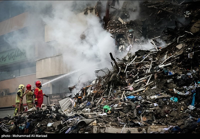 سخنگوی اتشنشانی شهرداری تهران وجود برخی اخبار مبنی بر احتمال زنده بودن برخی آتشنشانان گرفتار زیر آوار ساختمان پلاسکو را نادرست خواند و گفت: قویاً این مسئله را تکذیب میکنم. مجموع آتشنشانان شهید و مفقود حداکثر 25 نفر است.