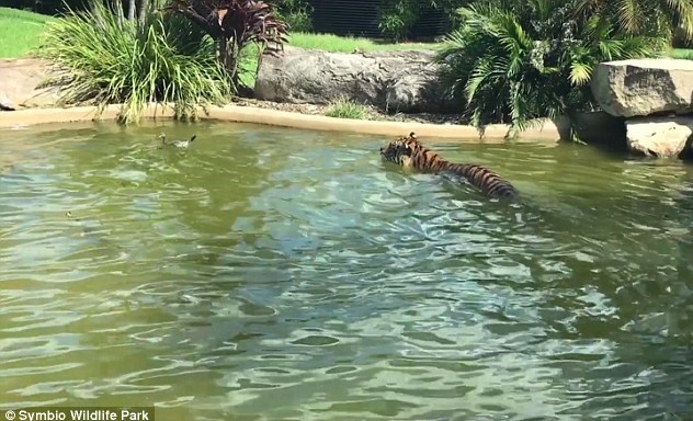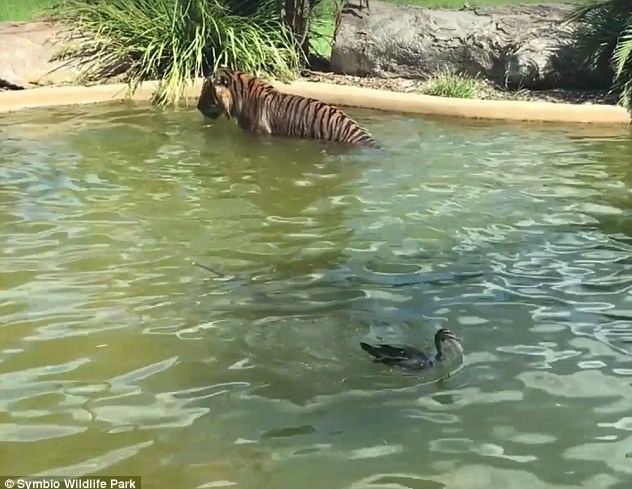 مسئولان این پارک حیات‌وحش در صفحه فیس‌بوک پارک ویدئویی را به اشتراک گذاشته‌اند که در آن ببر گرسنه در تعقیب اردک است تا آن را شکار کند، اما اردک با مهارت تمام شیرجه می‌زند و زیرآبی می‌رود.