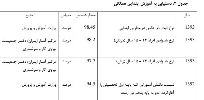 برخی آمار ارائه شده از وضعیت نظام آموزش‌وپرورش ایران در قالب سند آموزش 2030 بدین شرح است: