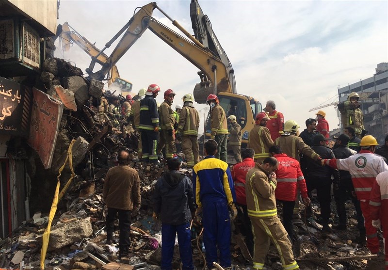 سرانجام جسد یکی دیگر از آتشنشانهایی که زیر آوار مانده بود، پیدا شد و مأموران در حال خروج جسد هستند.