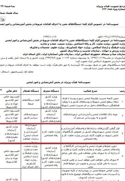 اما بررسی این مصوبه هیات دولت می تواند بخشی از گره های ماجرا را باز کند؛ در این سند به روشنی به وظایف وزارت تعاون، کار و رفاه اجتماعی درباره ایمن سازی واحد های تولیدی، صنفیی و تجاری اشاره شده ؛ در بخشی از این مصوبه آمده است: «قرار گرفتن گزارش های سازمان ها و واحدهای آتش نشانی و خدمات ایمنی شهرداری های کشور در خصوص کارگاه های ناایمن شهری در اولویت بازرسی وزارت تعاون، کار و رفاه اجتماعی است»