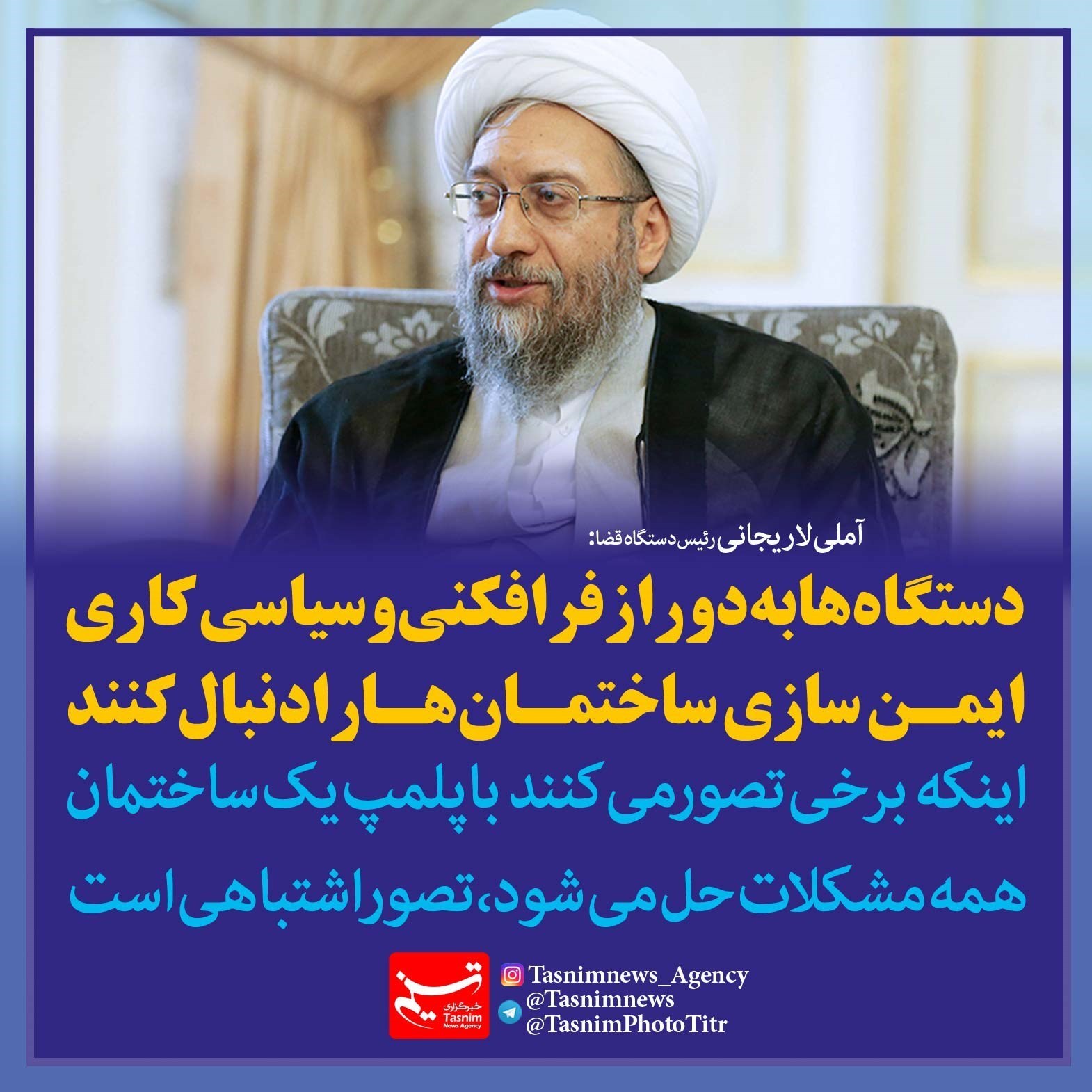 رئیس قوه‌قضائیه گفت: ایمن سازی، لوازم و راه های گوناگونی دارد و لازم است همه دستگاه ها با همکاری یکدیگر و مردم و بدون فرافکنی و سیاسی کاری، اجرایی شدن برنامه های مربوط به ایمن سازی ساختمان های مسکونی و تجاری را دنبال کنند.