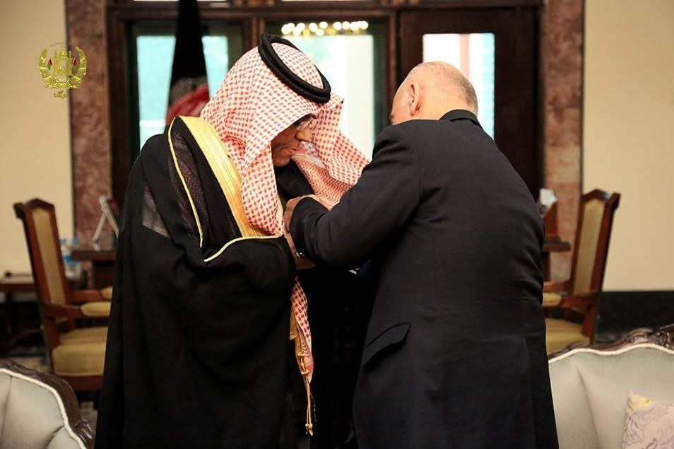 به گزارش دفتر منطقهای خبرگزاری تسنیم، دفتر رسانههای ریاست جمهوری افغانستان با انتشار اطلاعایهای نوشت که اشرفغنی به پاس قدردانی از تلاشهای سفیر عربستان برای گسترش روابط دو کشور و جلب کمکها به افغانستان مدال عالی غازی میر مسجدی خان را به وی اعطا نمود.