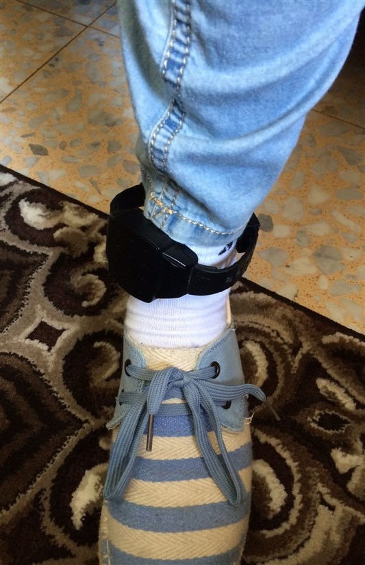 پابند الکترونیکی دارین تاتور که مانع از خروج او از خانه‌اش می‌شود