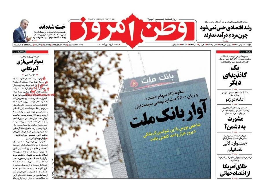تصاویر صفحه اول روزنامه‌های چهارشنبه 6 بهمن