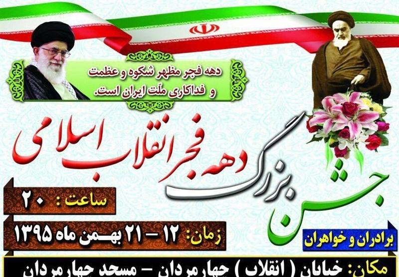 سلسله نشستهای جشن دهه فجر از ساعت 20 در خیابان انقلاب(چهارمردان)، مسجد چهارمردان با حضور برادران و خواهران برگزار خواهد شد.
