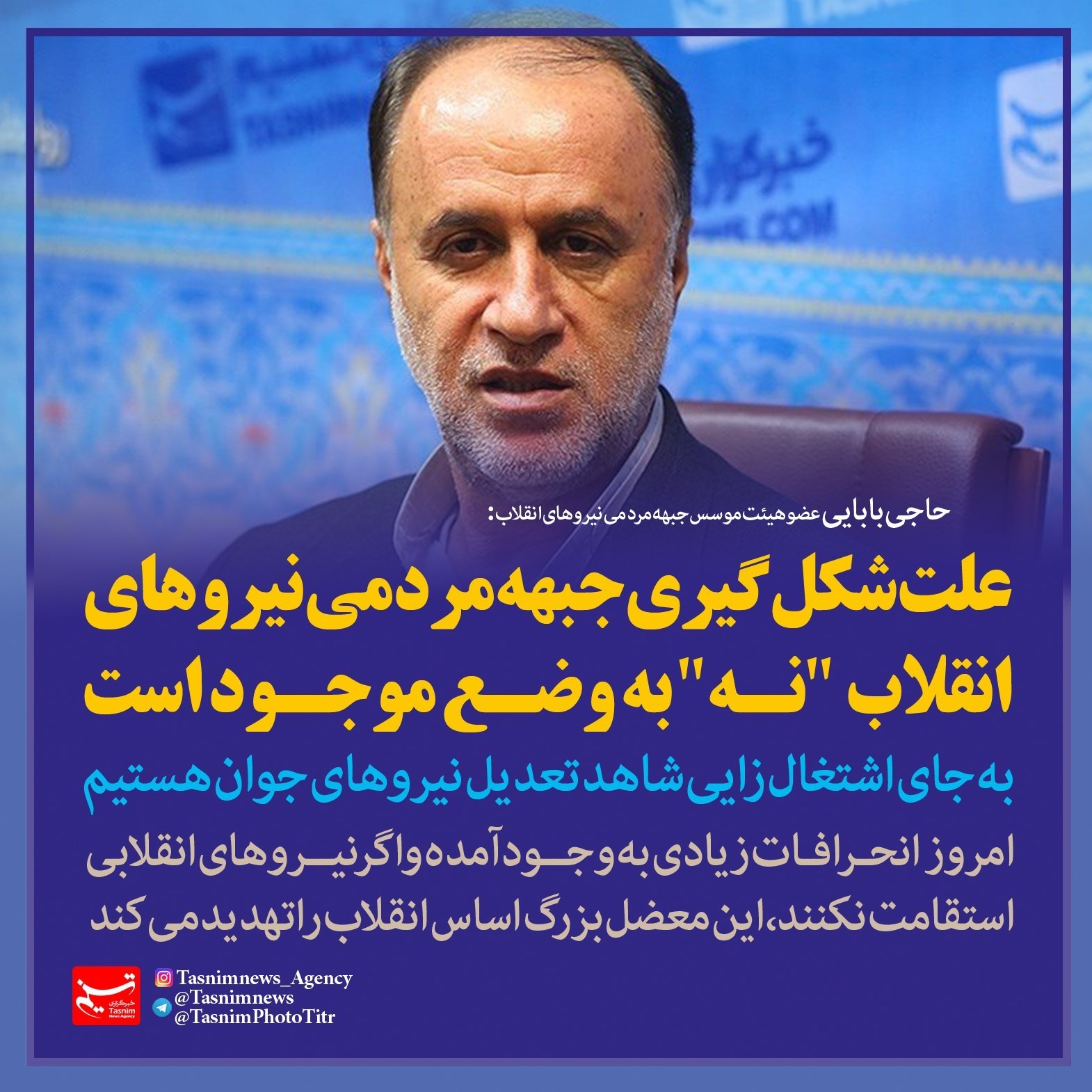 فتوتیتر/حاجی بابایی: علت شکل‌گیری جبهه مردمی نیروهای انقلاب "نه" به وضع موجود است